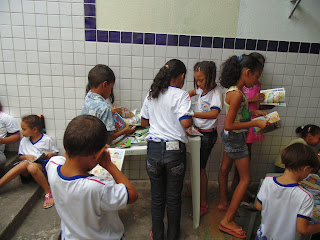 Reforço de manhã com os alunos do 5º ano B e parada da leitura com revistas e gibi da Turma da Monica com doações feitas pela Profª Ivanete e Profª Anissa. Com trabalho voluntario dos alunos como monitores auxiliando com os jogos do PNAIC na turma do 1º ano B Profª Mércia Sarmento.